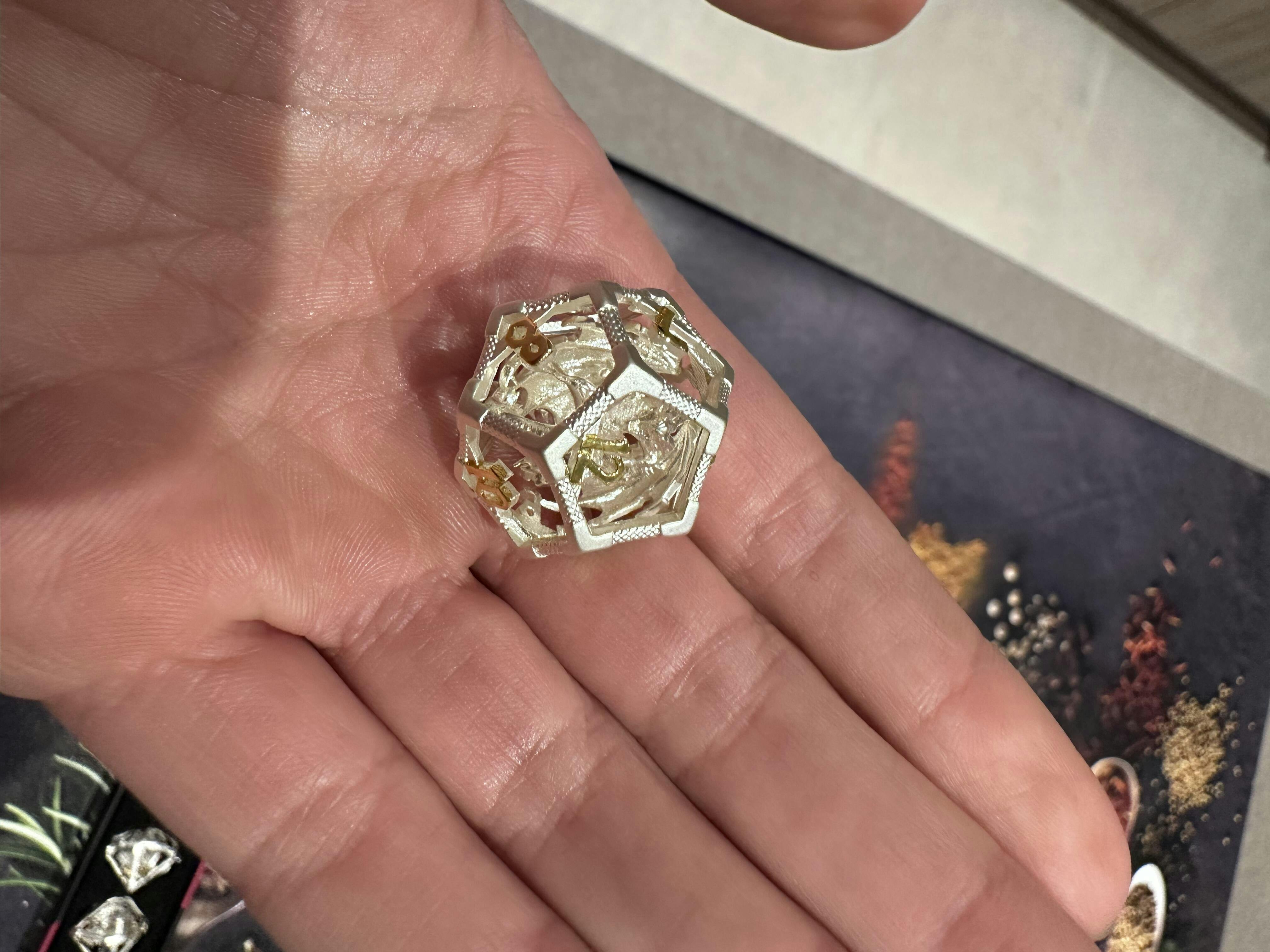 De set is exact zoals beschreven en op de fotos, wellicht zelfs beter! Ik ben er helemaal wel van, ze voelen kwalitatief aan en de kleuren zijn heel erg mooi. De draken in de open dobbelstenen zien er ook helemaal goed uit en duidelijk, net als de cijfers op de dobbelstenen.